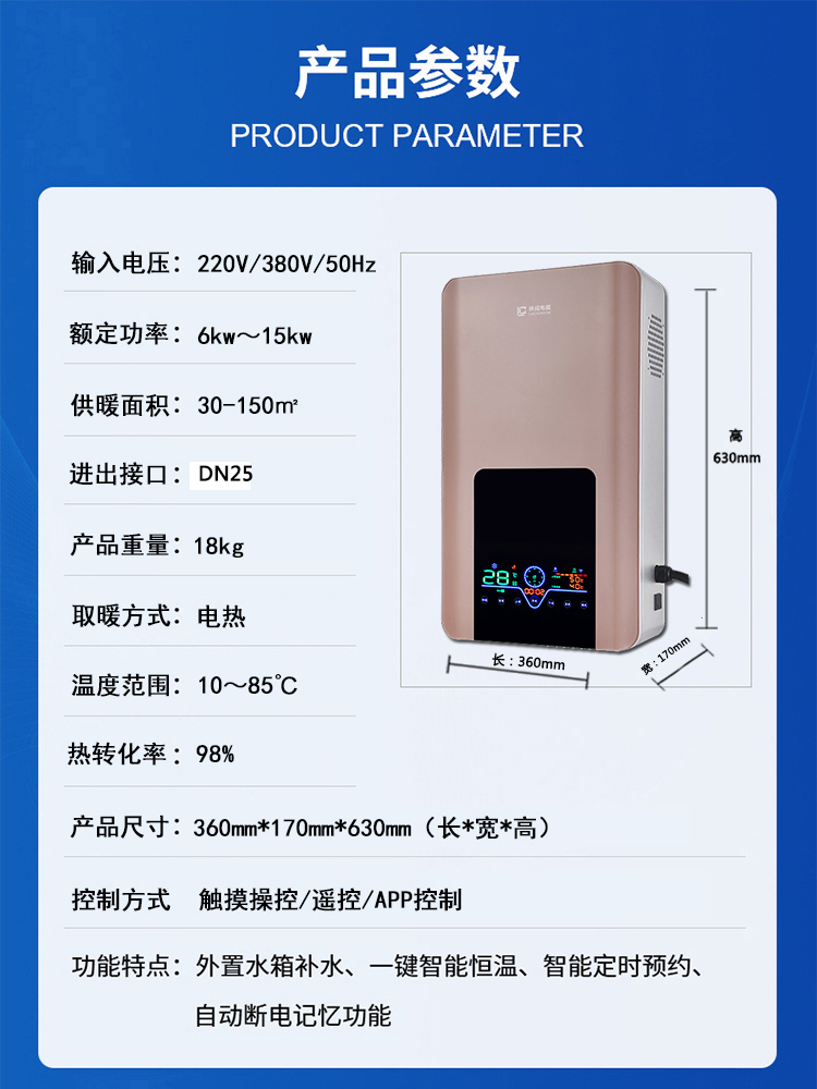 6~15kw壁掛電采暖爐